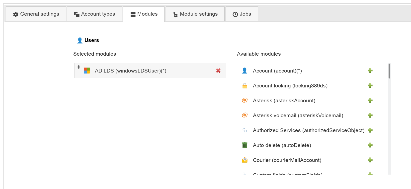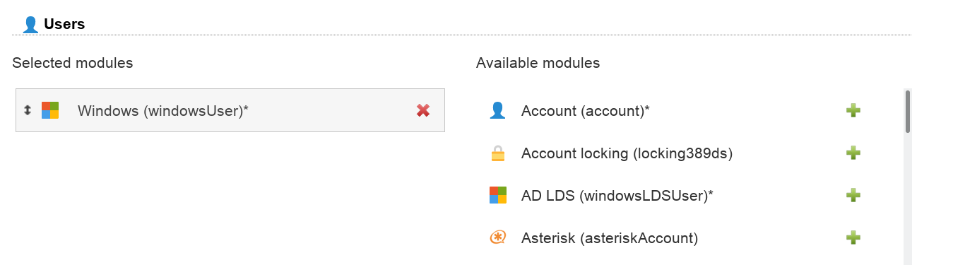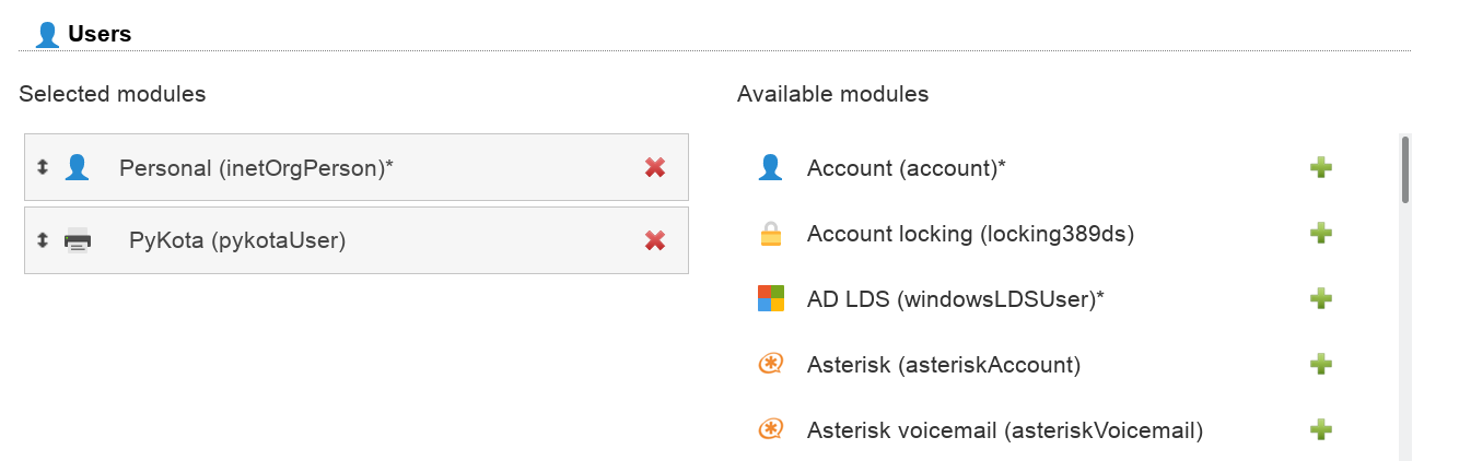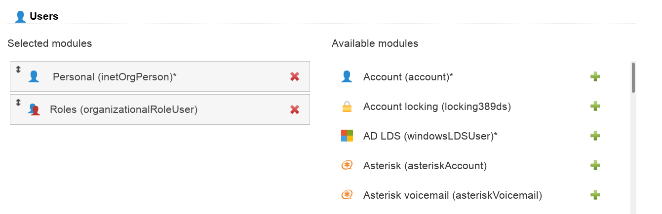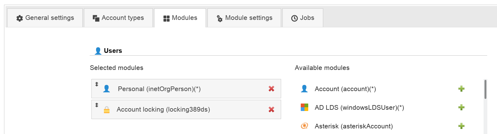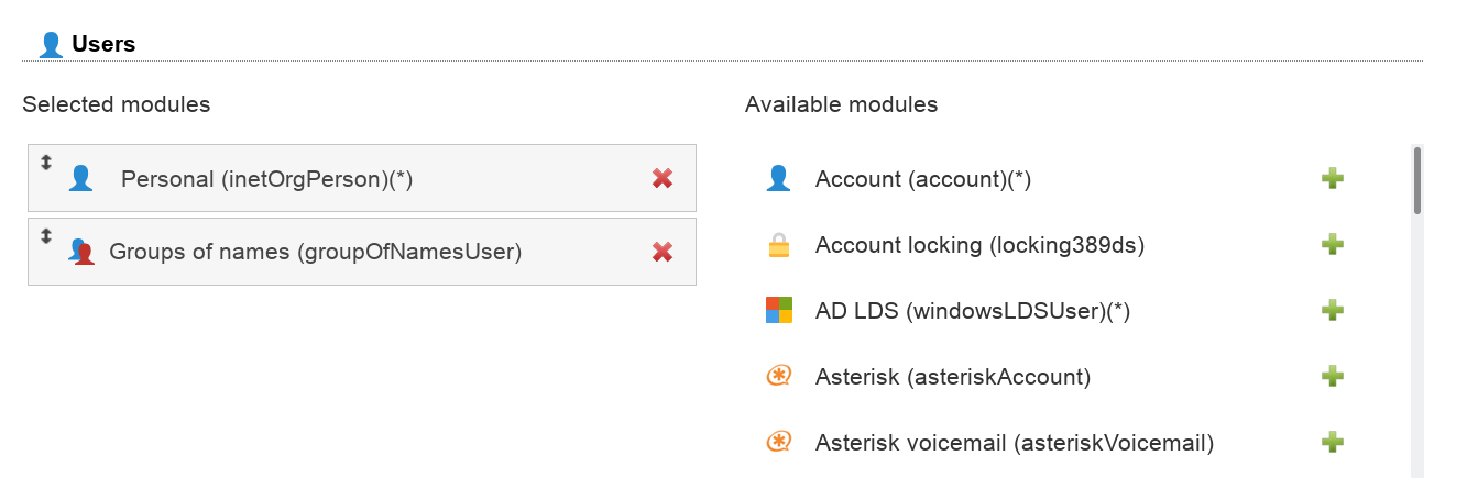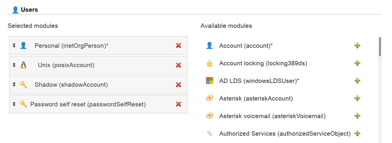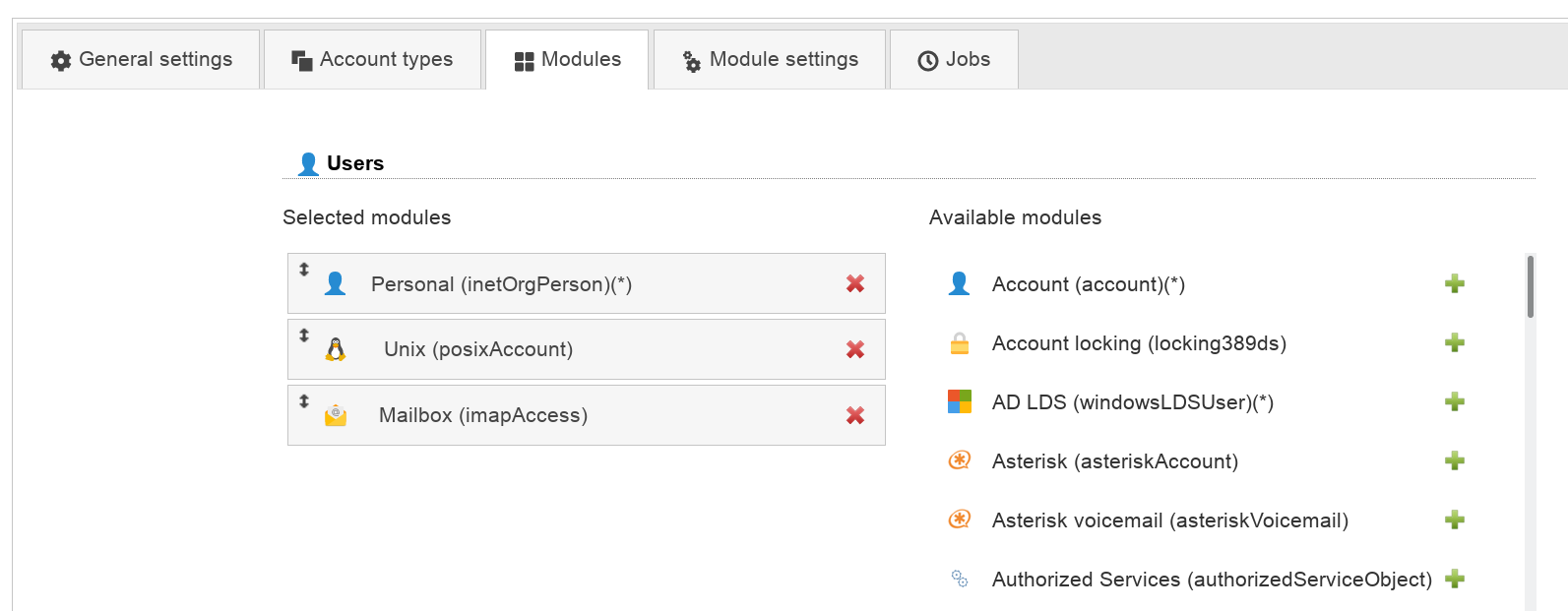 This is a very simple module to manage accounts based on the object class "account". Usually, this is used for host accounts only. Please pay attention that users based on the "account" object class cannot have contact information (e.g. telephone number) as with "inetOrgPerson".
