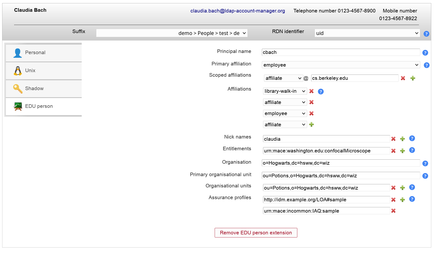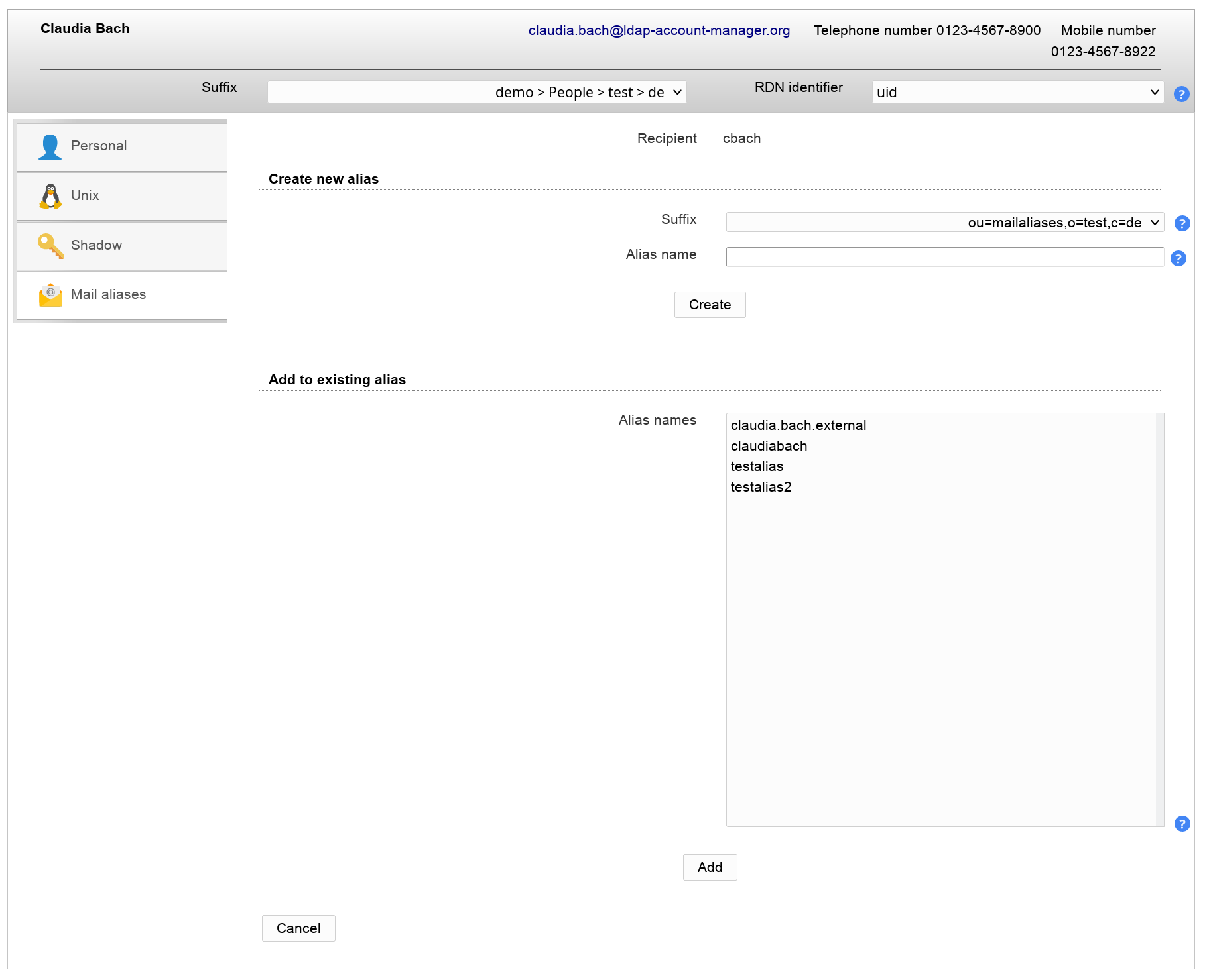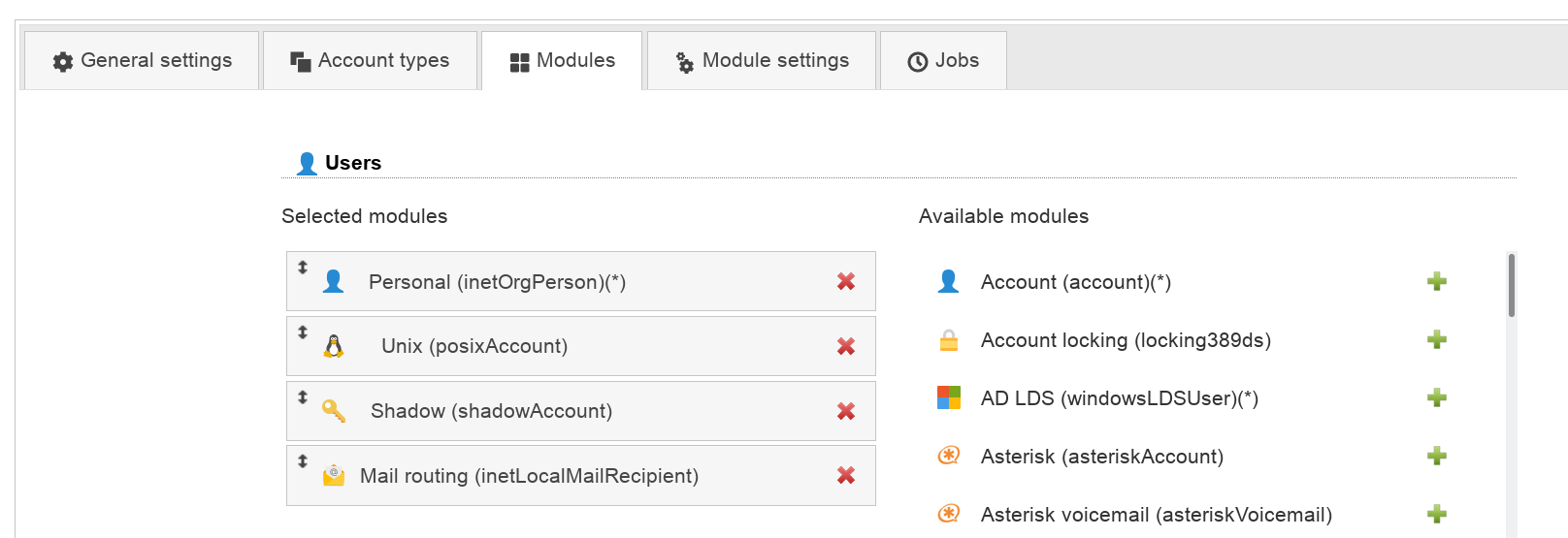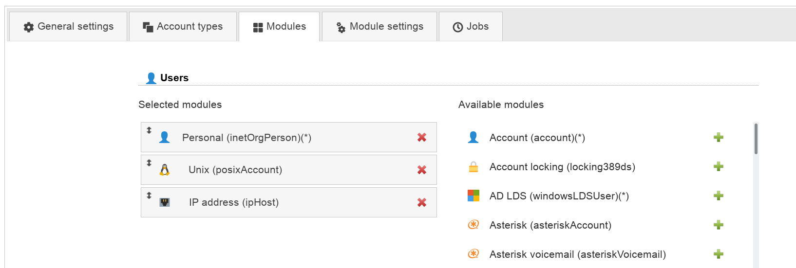 This module is the most common basis for user accounts in LAM. You can use it stand-alone to manage address book entries or in combination with Unix, Samba or other modules.