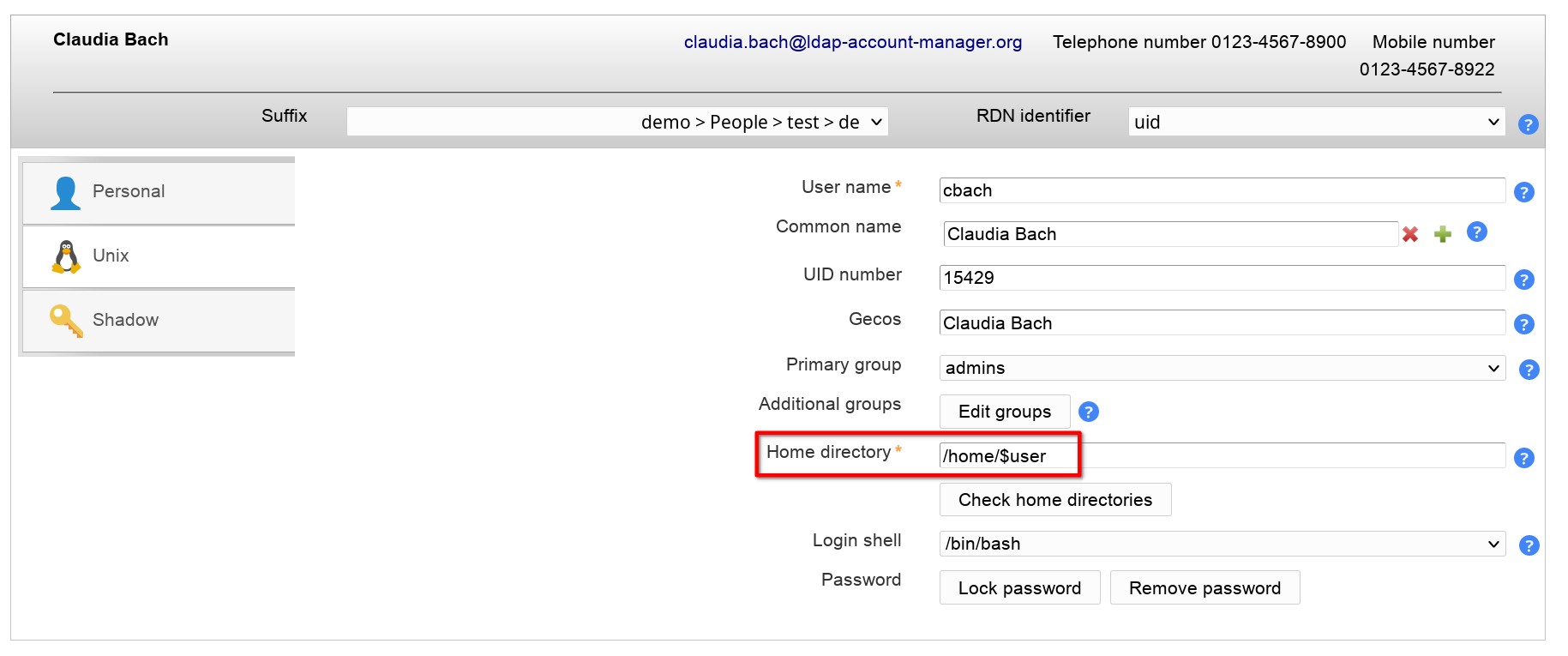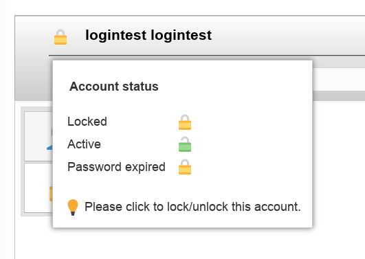 Note: Accounts are only locked by the LDAP server due to failed password attempts. You cannot manually lock an account. Deactivate it in case you want to disable login for a user.