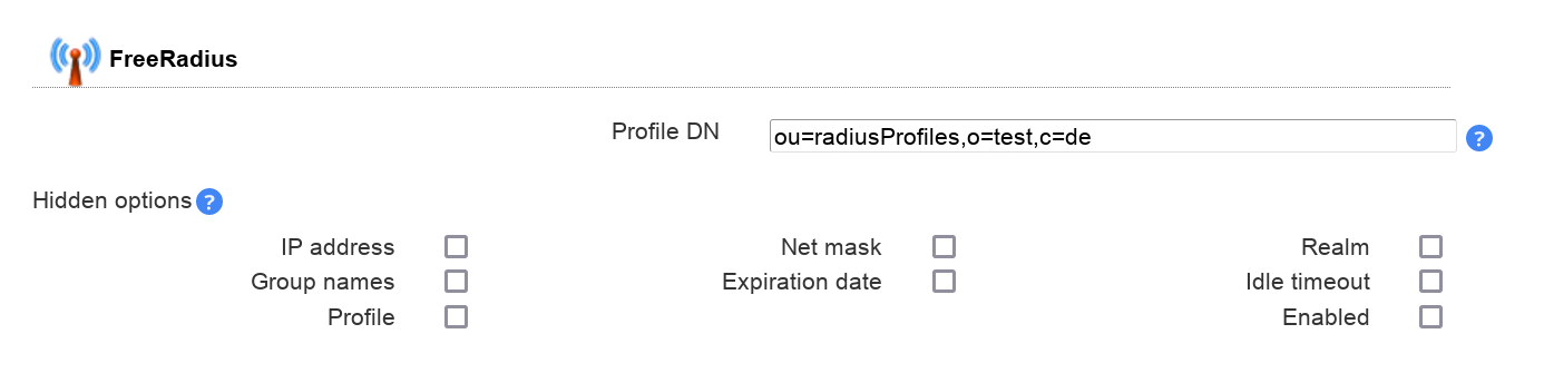 You can disable unneeded fields on the tab "Module settings". Here you can also set the DN where your Radius profile templates are stored if you use the option "Profile".