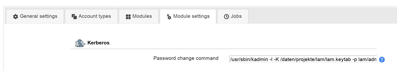You can manage your MIT Kerberos accounts with LAM Pro. Please add the user module "Kerberos (mitKerberos)" to activate this feature. If you want to manage entries based on the structural object class "krbPrincipal" please use "Kerberos (mitKerberosStructural)" instead.