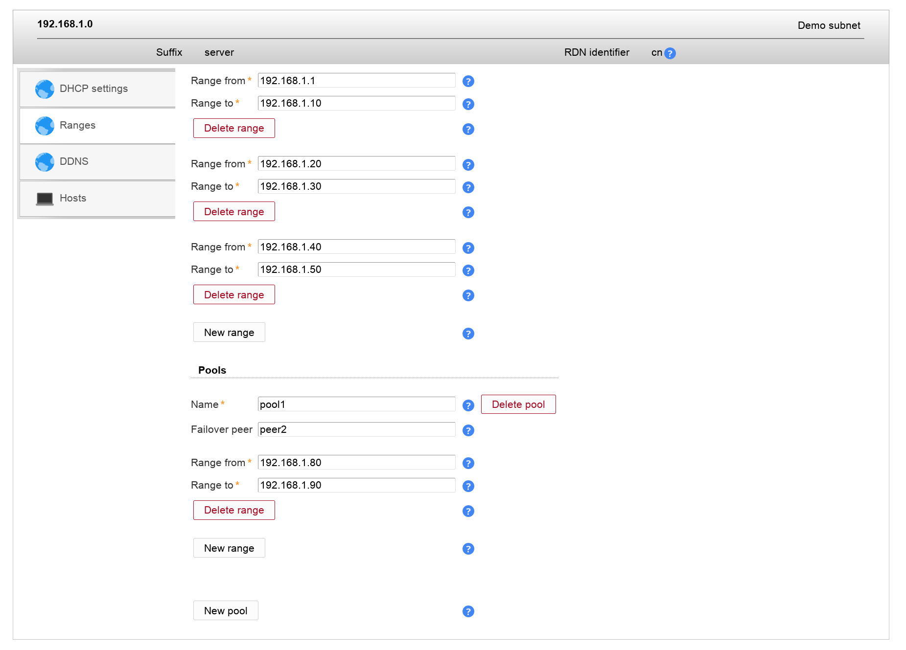If you activated DDNS in the server entry then you may also specify the DDNS settings for this subnet.